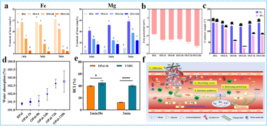 為進(jìn)一步探究止血機(jī)制,研究人員分析了草酸梯度溶蝕凹凸棒石中金屬離子變化、表面電荷和親疏水性等理化性能。