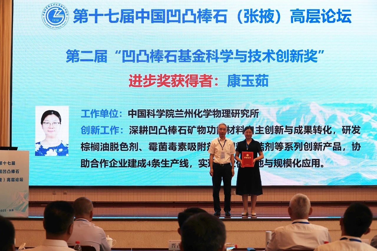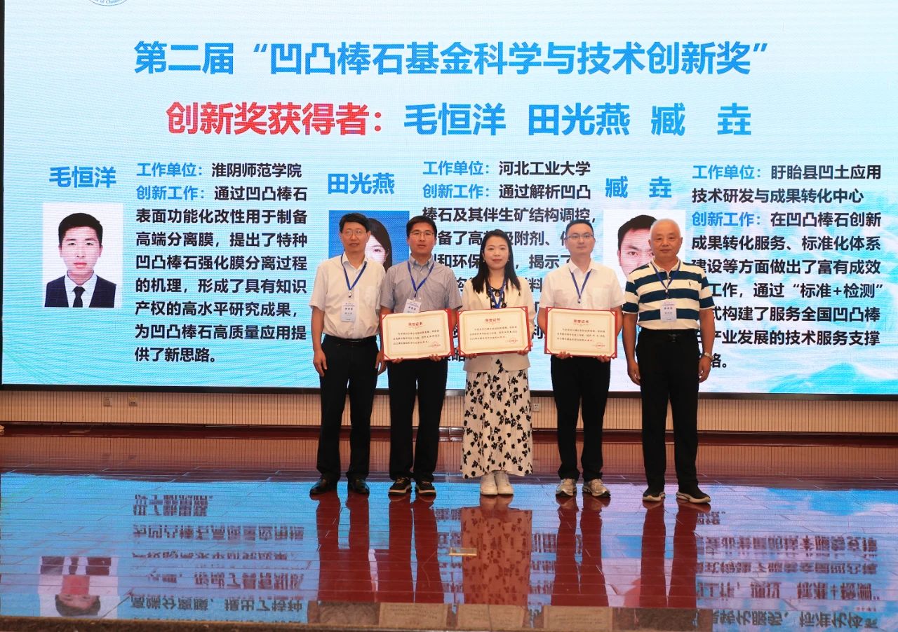 開幕式上,頒發(fā)了第二屆凹凸棒石基金科學與技術創(chuàng)新獎,以激勵更多優(yōu)秀人才加入凹凸棒石研究隊伍。蘭州化物所康玉茹高級工程師榮獲進步獎,河北工業(yè)大學田光燕副教授、淮陰師范學院毛恒洋副教授和盱眙縣凹土應用技術研發(fā)與成果轉化中心臧垚工程師獲得創(chuàng)新獎。