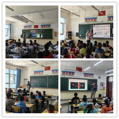 與會(huì)人員為王泉村鷺島小學(xué)孩子們帶來(lái)了系列科普?qǐng)?bào)告,送學(xué)下鄉(xiāng),將習(xí)近平總書(shū)記智志雙扶要求落在具體關(guān)愛(ài)舉措中。材料輻照效應(yīng)室副研究員、九三學(xué)社社員李宗臻以《名偵探柯南與科學(xué)探秘之返老還童》為題,通過(guò)動(dòng)漫柯南中的故事情節(jié),引入了細(xì)胞凋亡、提純技術(shù)、化學(xué)反應(yīng)等科學(xué)知識(shí),生動(dòng)地表達(dá)了科學(xué)源于生活,科學(xué)無(wú)處不在。原子分子結(jié)構(gòu)與動(dòng)力學(xué)室副研究員、九三學(xué)社社員張瑞田以《絢麗的天文觀測(cè)和有趣的原子世界》為題, 告訴同學(xué)們天文望遠(yuǎn)鏡為我們了解宇宙打開(kāi)了一扇窗,萬(wàn)物皆由原子組成,天文觀測(cè)主要是光譜,而加速器原子物理實(shí)驗(yàn)為我們揭秘絢麗的天文現(xiàn)象搭建了一座橋梁。核電子學(xué)室高級(jí)工程師、九三學(xué)社社員蒲天磊作了題為《神奇的電——電的故事與安全用電》報(bào)告, 講述了人類從發(fā)現(xiàn)電到應(yīng)用電的一系列故事,科普了相關(guān)原理,進(jìn)行了安全用電教學(xué)。所級(jí)公共平臺(tái)高級(jí)實(shí)驗(yàn)師、九三學(xué)社社員李小剛則通過(guò)《世界的大與小》,讓小朋友們認(rèn)識(shí)了宇宙的浩瀚無(wú)邊和微觀世界的微不可見(jiàn)。豐富廣泛的主題,深入淺出的講解,讓同學(xué)們聽(tīng)得入神、受益良多。