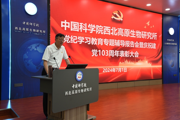 為慶祝中國共產黨成立103周年,弘揚偉大建黨精神,持續(xù)深入開展黨紀學習教育,7月1日下午,中國科學院西北高原生物研究所(以下簡稱西北高原所)召開黨紀學習教育專題輔導報告會暨慶祝建黨103周年表彰大會。西北高原所在職職工、離退休職工、研究生參加會議,會議由西北高原所黨委副書記、紀委書記楊勇剛主持。?