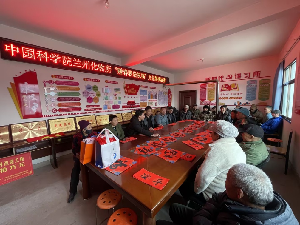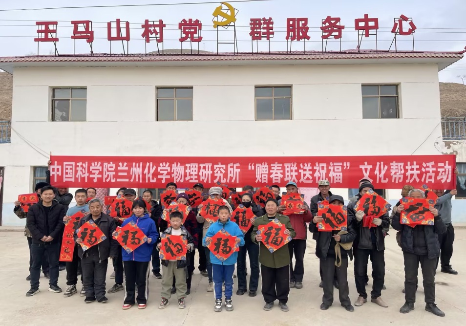 為豐富農(nóng)村精神文化生活,在2025年新春佳節(jié)來臨之際,1月23日下午,中國科學(xué)院蘭州化學(xué)物理研究所在會(huì)寧縣漢家岔鎮(zhèn)王馬山村開展了“贈(zèng)春聯(lián) 送祝?!被顒?dòng),為幫扶村老鄉(xiāng)們送去研究所的關(guān)心問候和美好祝福。