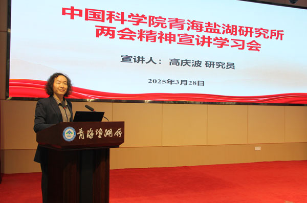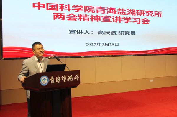 為深入學(xué)習(xí)貫徹2025年全國兩會精神,全面落實(shí)習(xí)近平總書記重要講話及政府工作報(bào)告核心要義,中國科學(xué)院青海鹽湖研究所于3月28日在學(xué)術(shù)報(bào)告廳舉辦貫徹落實(shí)2025年全國兩會精神主題宣講學(xué)習(xí)會。會議特邀全國政協(xié)委員、西北高原所研究員高慶波作主題宣講,會議由黨委副書記、副所長王建萍主持,青海鹽湖所全體職工和研究生參加會議。