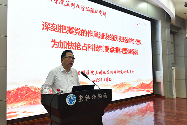 6月25日上午,中國科學(xué)院蘭州化學(xué)物理研究所舉行慶祝建黨104周年黨員大會(huì)暨深入貫徹中央八項(xiàng)規(guī)定精神學(xué)習(xí)教育主題黨課報(bào)告會(huì)。全所黨員領(lǐng)導(dǎo)干部、職工和研究生黨員及離退休黨員代表、民主黨派代表等參加會(huì)議。所長、黨委副書記周峰主持會(huì)議。