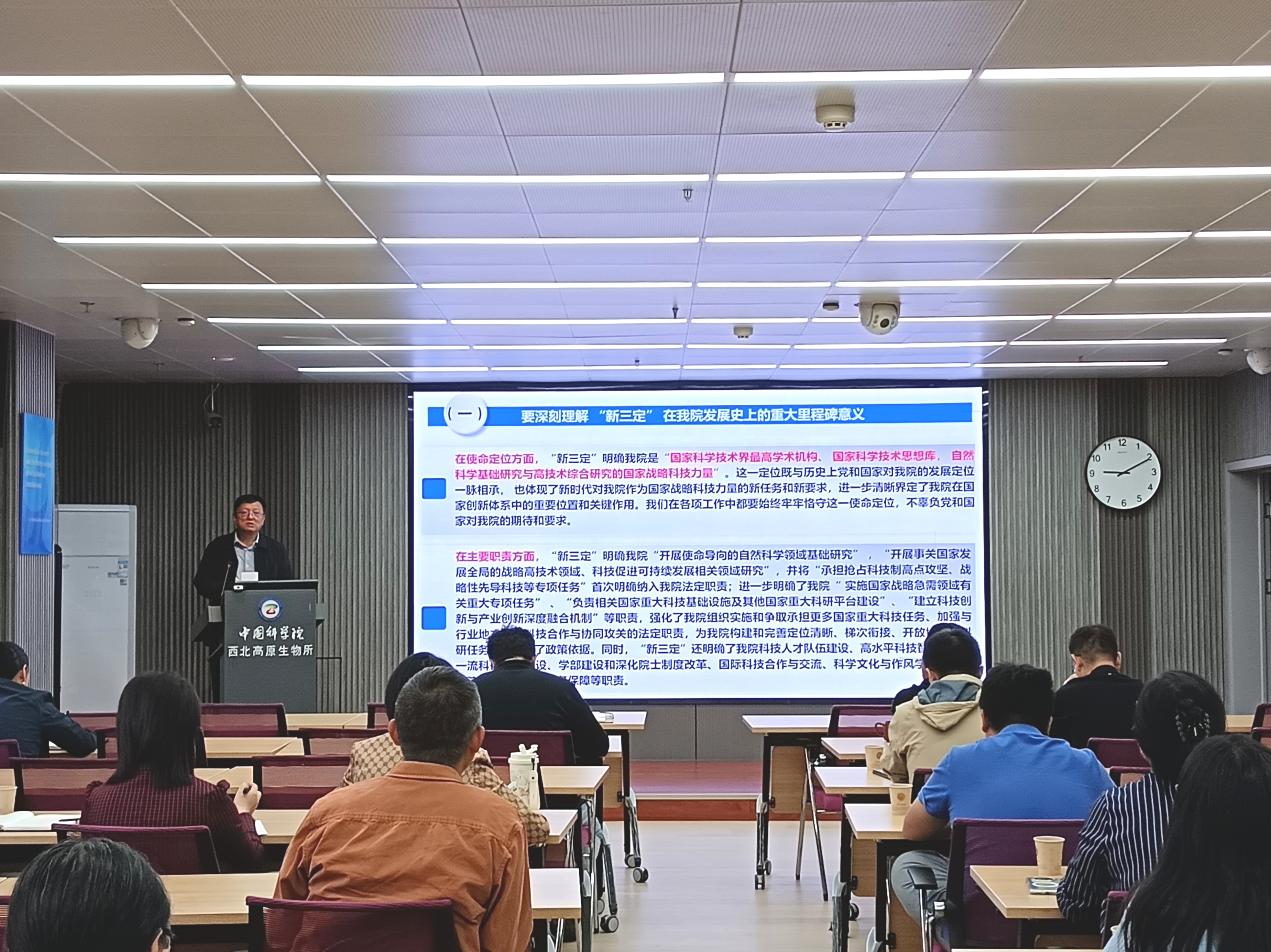 陳世龍傳達了院黨組夏季擴大會議精神,重點圍繞貫徹落實黨中央賦予中國科學院的新使命新要求、組織實施國家重大科技任務、高質量做好“十五五”規(guī)劃編制工作、進一步深化科研院所改革以及鞏固深化深入貫徹中央八項規(guī)定精神學習教育成果等方面進行了深入講解。結合西北高原所科研工作實際,將講話精神與研究所重點工作相結合,引導參會人員將思想和行動統(tǒng)一到院黨組決策部署上來。