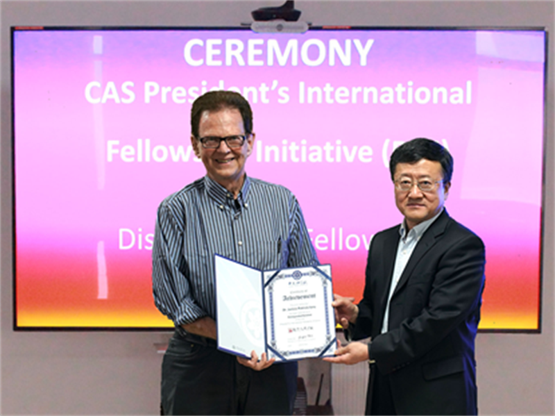 圖1:趙紅衛(wèi)為James P. Vary教授頒發(fā)中國科學院國際人才計劃杰出科學家獎狀