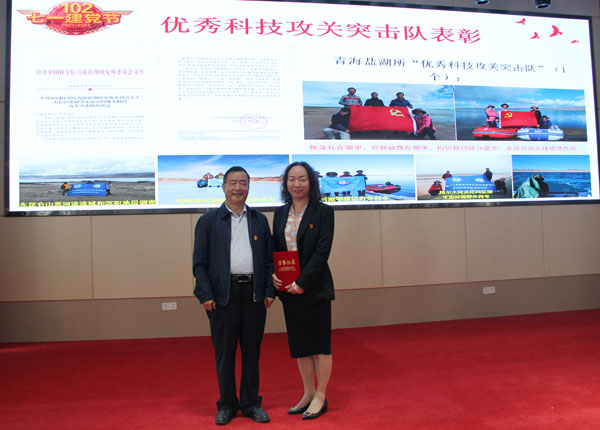 大會宣讀了《中共中國科學(xué)院黨組關(guān)于表彰中國科學(xué)院優(yōu)秀共產(chǎn)黨員、優(yōu)秀黨務(wù)工作者和先進基層黨組織的決定》《中共中國科學(xué)院蘭州分院分黨組關(guān)于表彰先進基層黨組織、優(yōu)秀共產(chǎn)黨員和優(yōu)秀黨務(wù)工作者的決定》。表彰了優(yōu)秀科技攻關(guān)突擊隊“張彭熹鹽湖科考突擊隊”。?