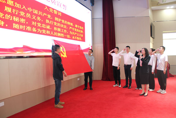 會議舉行了新黨員宣誓儀式。面向鮮紅的黨旗,副所長王建萍帶領(lǐng)新黨員莊嚴宣誓,在場全體黨員重溫入黨誓詞。?