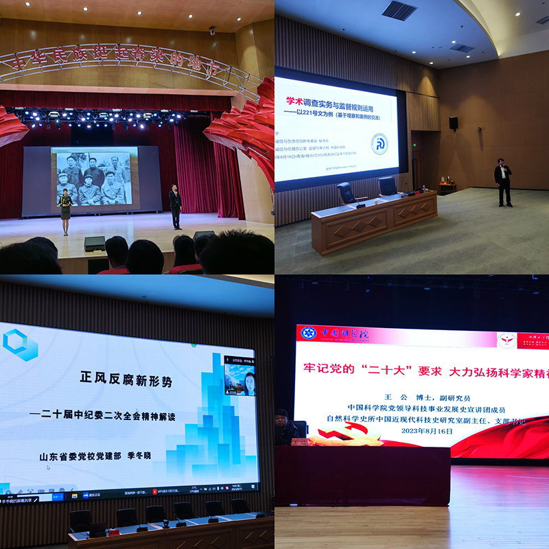 此次培訓(xùn)結(jié)合工作實(shí)際,特邀了山東省委黨校季冬曉教授對(duì)二十屆中紀(jì)委二次全會(huì)精神進(jìn)行解讀,讓參訓(xùn)人員更加清晰地對(duì)全面從嚴(yán)治黨體系,特別是黨內(nèi)監(jiān)督的具體內(nèi)容有了更加深入的理解;中國(guó)科學(xué)院監(jiān)督與審計(jì)局科研誠(chéng)信與倫理辦公室主任侯興宇作題為《學(xué)術(shù)調(diào)查實(shí)務(wù)與監(jiān)督規(guī)則運(yùn)用》輔導(dǎo)報(bào)告,提升了在處理科研誠(chéng)信案件中分析運(yùn)用的能力;中國(guó)近現(xiàn)代科技史研究室副主任、中國(guó)科學(xué)院黨領(lǐng)導(dǎo)科技事業(yè)發(fā)展史宣講團(tuán)隊(duì)成員、中國(guó)科學(xué)院自然科學(xué)史研究所副研究員王公作《牢記黨的二十大要求 大力弘揚(yáng)科學(xué)家精神》專題講座,以梳理和講述中國(guó)科學(xué)史的發(fā)展進(jìn)程為主線,將一代又一代無(wú)私奉獻(xiàn),攻堅(jiān)克難,以家國(guó)命運(yùn)為己任的科學(xué)家事跡貫穿其中,逐步深入地闡述了科學(xué)家精神的內(nèi)涵及其時(shí)代價(jià)值。