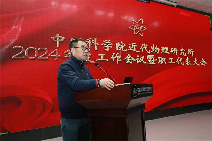 所長徐瑚珊研究員傳達了習近平總書記對中國科學院的重要批示精神和院2024年度工作會議精神,并代表所領導班子向大會作年度工作報告。報告重點匯報了2023年研究所貫徹落實中央重大決策部署和院黨組決策部署情況、聚焦主責主業(yè)情況和主要成果進展、不足等。報告指出,2023年研究所按照 “四個率先”和“兩加快一努力”目標要求,凝聚全所職工和研究生力量,取得了一系列成果和穩(wěn)定發(fā)展,2024年要堅定信心,以更加昂揚的斗志和更加扎實的作風,為加快搶占科技制高點、加快實現(xiàn)高水平科技自立自強貢獻近代物理所力量。
