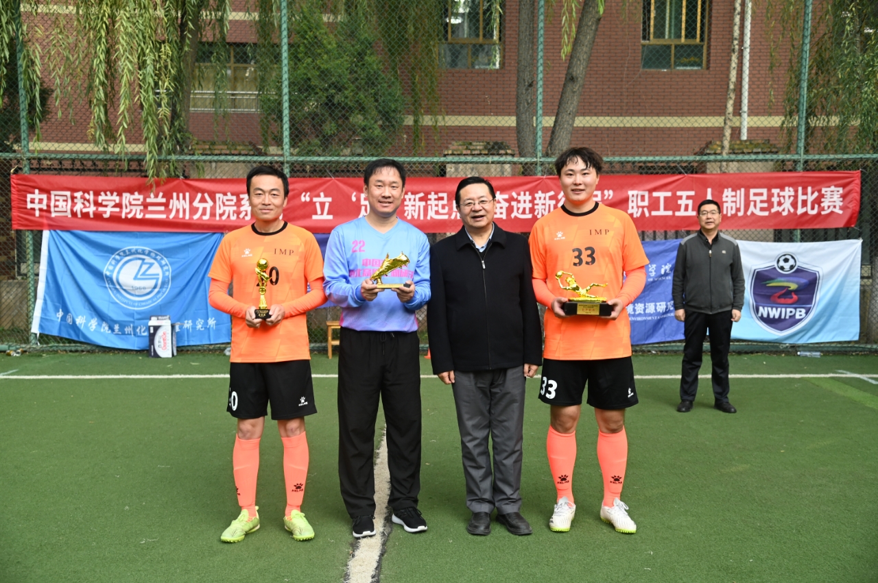 經(jīng)過(guò)兩天的角逐和比拼,近代物理所代表隊(duì)獲得冠軍,西北研究院代表隊(duì)獲得亞軍,蘭州化物所代表隊(duì)獲得季軍,蘭州分院和西北高原所代表隊(duì)分別獲得最佳組織獎(jiǎng)和團(tuán)結(jié)拼搏獎(jiǎng)。隊(duì)員李明睿獲得金球獎(jiǎng),江磊獲得金靴獎(jiǎng),田強(qiáng)勝獲得金手套獎(jiǎng)。
