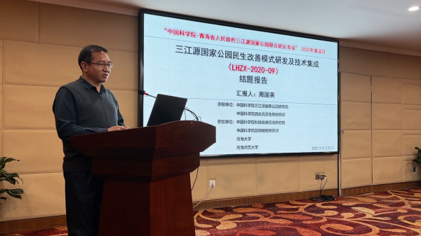 中國科學院三江源國家公園研究院研究員周國英匯報“三江源國家公園民生改善模式研發(fā)及技術(shù)集成”項目情況