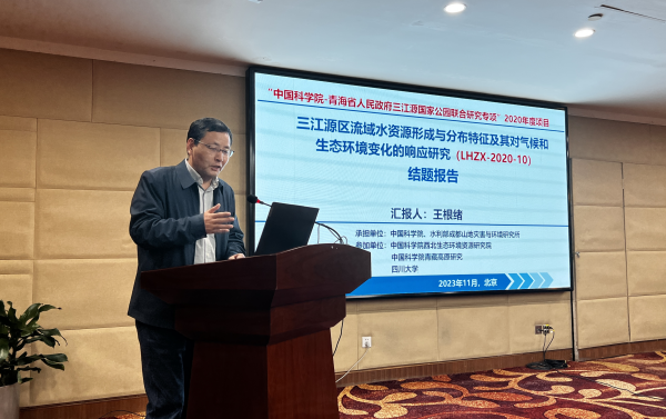 中國科學院成都山地災害與環(huán)境所研究員王根緒匯報“三江源區(qū)流域水資源形成與分布特征及其對氣候和生態(tài)環(huán)境變化的響應研究”項目情況
