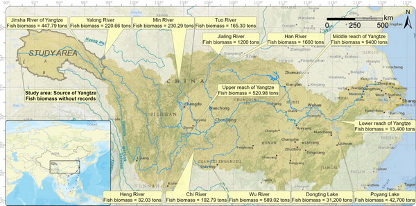 長(zhǎng)江流域主要干支流的魚類資源量記錄