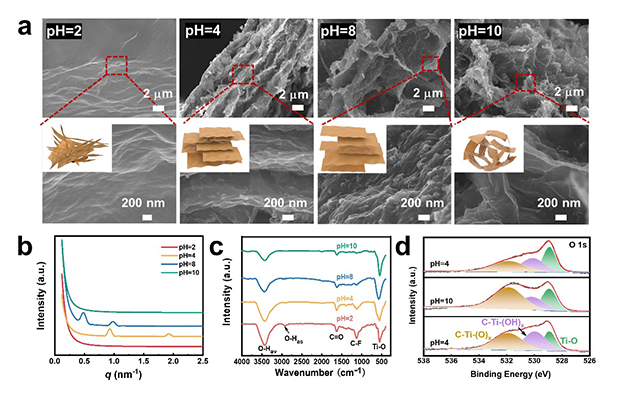 圖 2. 不同pH下MXene凝膠拓?fù)浣Y(jié)構(gòu)及表面端基成分的區(qū)別