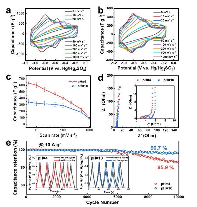 圖4. 不同pH MXene凝膠的電化學(xué)性能研究