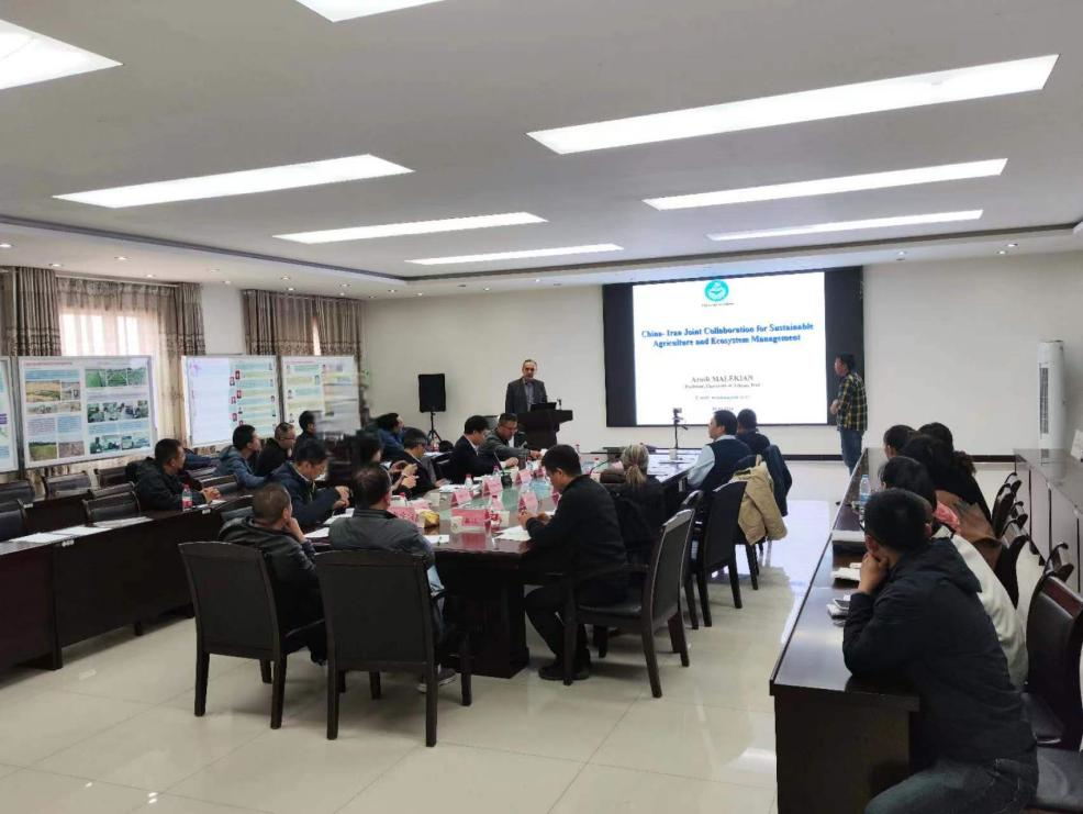 學(xué)術(shù)交流環(huán)節(jié),何志斌介紹了臨澤站發(fā)展歷史、研究方向、科研平臺與人才培養(yǎng)等情況,重點(diǎn)匯報了臨澤站在服務(wù)國家重大戰(zhàn)略和助力地方經(jīng)濟(jì)社會發(fā)展等方面取得的科研成果。Arash Malekian介紹了伊朗德黑蘭大學(xué)和研究團(tuán)隊,并作了題為China - Iran Joint Collaboration for Sustainable Agriculture and Ecosystem Management的學(xué)術(shù)報告?!爸邪鸵两?jīng)濟(jì)走廊新墾綠洲地力與產(chǎn)能協(xié)同提升技術(shù)集成與示范”項(xiàng)目負(fù)責(zé)人、臨澤站劉冰研究員從新墾綠洲、沙地地力提升關(guān)鍵技術(shù)等6個方面匯報了項(xiàng)目在中國、伊朗和巴基斯坦已取得的科研進(jìn)展,并介紹了項(xiàng)目的國際合作情況。