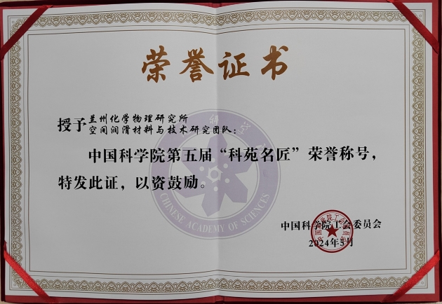 蘭州化物所空間潤滑材料與技術研究團隊獲第五屆中國科學院科苑名匠表彰