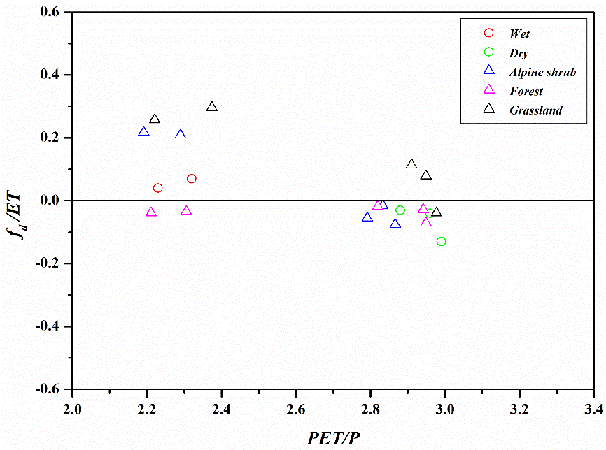 圖3 基巖風(fēng)化層的垂直通量(fd)對蒸散發(fā)(ET)的貢獻。雨季(2017年、2019年)和旱季(2018年、2020年、2021年)。