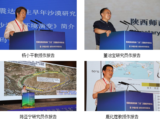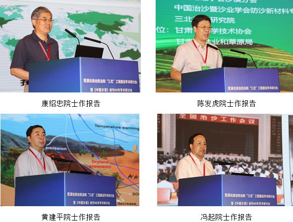 研討會(huì)以“荒漠化綜合防治和‘三北’工程建設(shè)”為主題,旨在深入學(xué)習(xí)貫徹落實(shí)習(xí)近平總書(shū)記關(guān)于加強(qiáng)荒漠化綜合防治和推進(jìn)生態(tài)工程建設(shè)重要講話精神,推動(dòng)山水林田湖草沙一體化保護(hù)和系統(tǒng)治理,總結(jié)和交流相關(guān)研究成果,促進(jìn)人與自然和諧共生。大會(huì)邀請(qǐng)了丁一匯、姚檀棟、侯立安、鄭曉靜、康紹忠、陳發(fā)虎、黃建平、馮起、方小敏、朱教君等10位院士和王濤、李新榮、楊小平、董治寶、陳亞寧、鹿化煜、屈建軍、楊文斌等8位專家作主題報(bào)告,并組織了14個(gè)分論壇的專題報(bào)告。南志標(biāo)、賴遠(yuǎn)明、楊志峰院士參會(huì)??凳啦⒉軓V超、盧琦、李廣、勾曉華、楊興國(guó)分別主持大會(huì)主題報(bào)告。與會(huì)專家學(xué)者圍繞荒漠化綜合防治和“三北”工程建設(shè)的新理念、新技術(shù),深入探討了荒漠化地區(qū)氣候變化與生態(tài)系統(tǒng)響應(yīng)、荒漠生態(tài)修復(fù)與治理、全球氣候變化對(duì)西北暖濕化趨勢(shì)的影響等前沿問(wèn)題。
