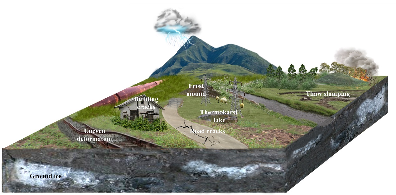 研究結(jié)果顯示,在氣候變暖和環(huán)境變化的影響下,區(qū)域凍土表現(xiàn)出區(qū)域的退化和局部的進化。多年凍土分布、地下冰、土體水熱狀態(tài)等的時空變化影響區(qū)域生態(tài)系統(tǒng)分布和演替、能水和碳循環(huán)以及寒區(qū)工程安全。凍土變化過程中,對寒區(qū)環(huán)境致災和致利效應隨凍土退化過程相互轉(zhuǎn)化。凍土的退化是寒區(qū)環(huán)境變化的重要驅(qū)動因素,定量地探索凍土變化對區(qū)域水-碳資源和生態(tài)環(huán)境的影響及其效應轉(zhuǎn)變過程,利用致利效應,預防致災效應,科學應對未來氣候變暖帶來的挑戰(zhàn)。