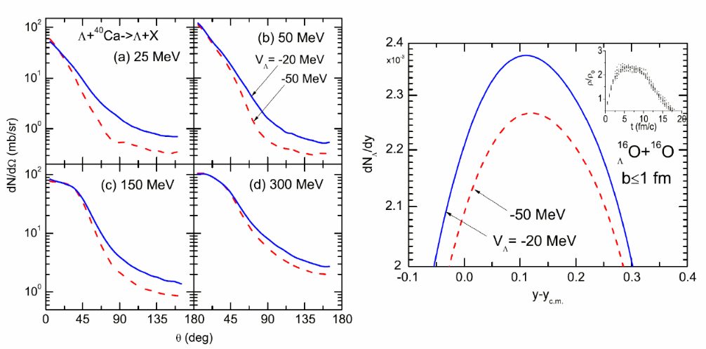 研究人員還基于考慮平均場的核內(nèi)級聯(lián)模型及熱剩余退激模型,率先提出利用超子、超核次級束流來研究超子-核子相互作用及高重子密度下的超子勢,通過測量反應中發(fā)射的超子提取常密、高密核物質(zhì)中的超子勢。這種探測研究超子勢的方法最大限度地減少了各種理論的不確定性。此外,研究還討論了相關實驗的可行性。