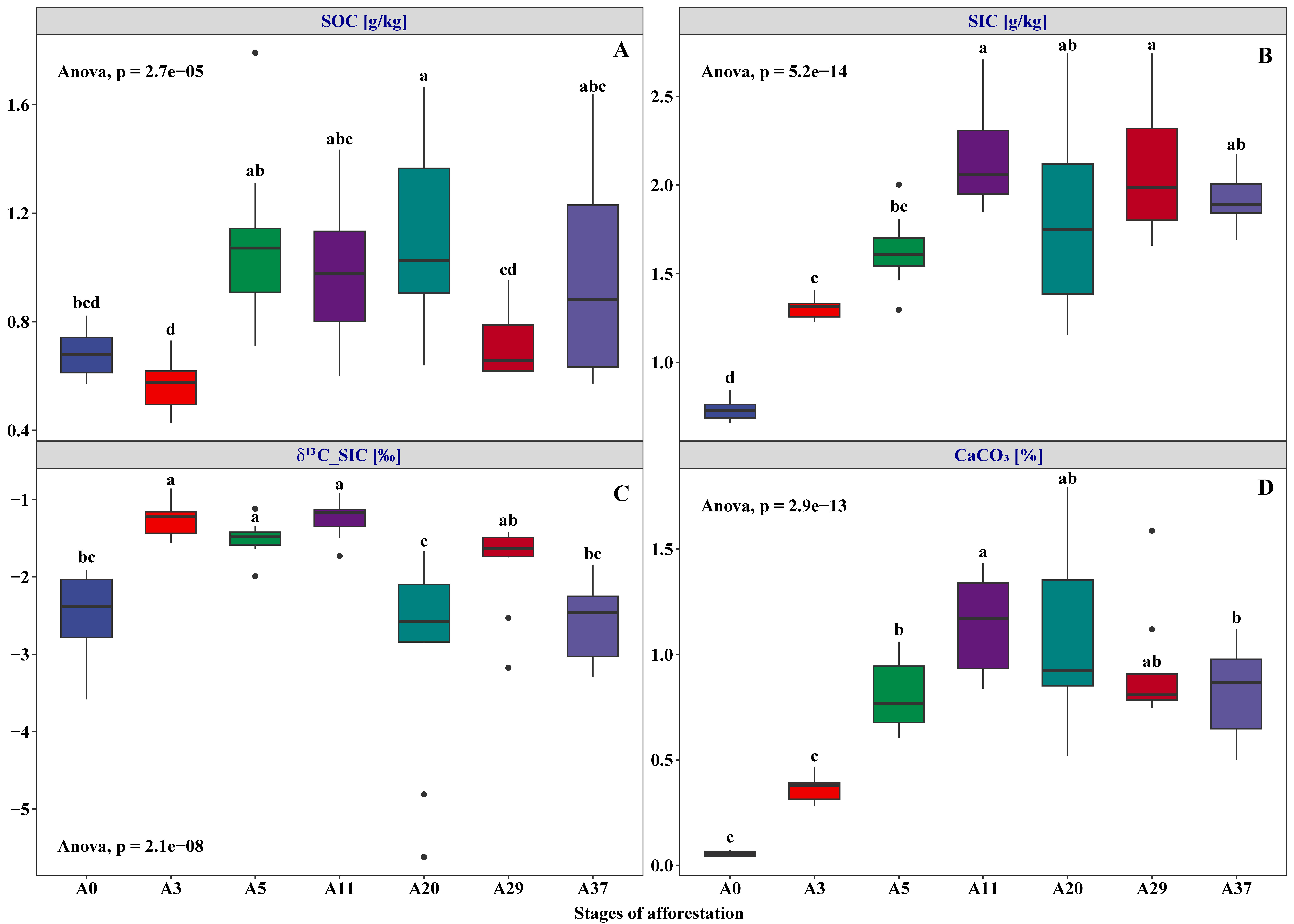 研究結(jié)果顯示,隨著飛播造林植被群落的不斷演替,飛播造林顯著改變了沙地土壤理化性質(zhì)和微生物群落結(jié)構(gòu),同時大量的鹽分和氮元素隨著掉落物和生物量進入土壤,在荒漠區(qū)豐富的鈣離子和鎂離子膠結(jié)作用下,形成土壤團聚體,從而起到固定土壤有機碳的作用。