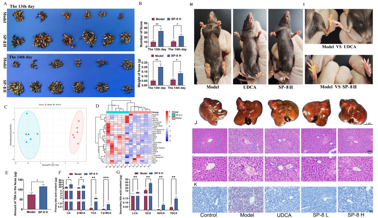 中國(guó)科學(xué)院西北高原生物研究所高原藥用資源生態(tài)保護(hù)與繁育研究團(tuán)隊(duì)從一種傳統(tǒng)藥材中篩選得到咖啡??鼘幩峄钚越M份,對(duì)CLD具有顯著的治療效果。該組份不僅能夠通過調(diào)控FXR信號(hào)通路,減少BAs的合成,而且能夠通過促進(jìn)BAs的肝腸循化,加速有害次級(jí)膽汁酸通過糞便排出體外,同時(shí)具有極強(qiáng)的抗炎活性,對(duì)膽汁淤積引起的肝臟損傷具有極強(qiáng)的保護(hù)和治療作用。該研究全面證實(shí)了咖啡??鼘幩峄钚越M份對(duì)膽汁淤積癥的治療效果并闡明了其作用機(jī)制,證實(shí)該組份具有很好的藥物開發(fā)潛力。