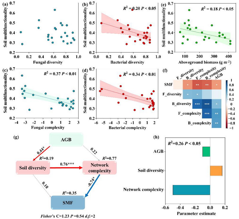 土壤微生物多樣性、網(wǎng)絡(luò)復(fù)雜性在初級生產(chǎn)力和土壤多功能性之間的調(diào)控作用