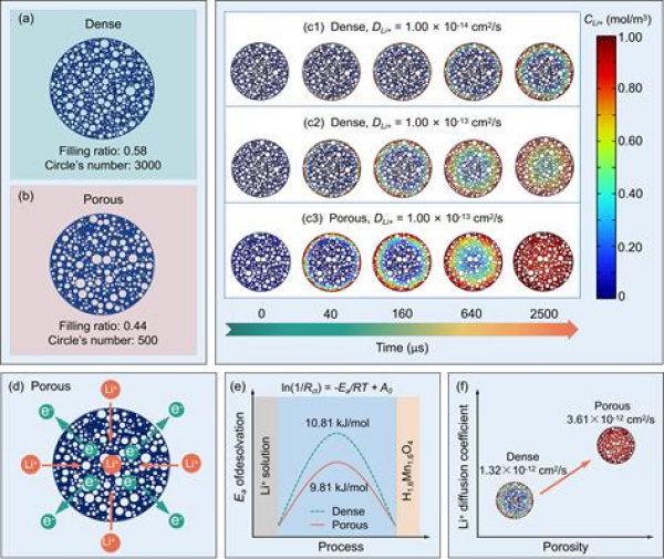 多孔強(qiáng)化鋰離子吸附擴(kuò)散和電子轉(zhuǎn)移機(jī)理圖