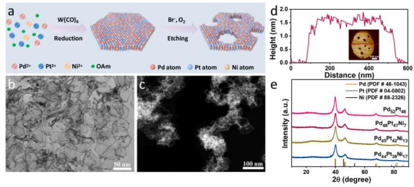 甲醇、乙醇等儲能小分子作為燃料的直接醇類燃料電池,具有能量密度高、工作溫度低、環(huán)境友好、燃料儲存和填充方便等優(yōu)點。電催化劑作為電催化反應(yīng)的核心,對提高燃料電池的效率起著重要作用。然而,目前開發(fā)的催化劑大多動力學(xué)遲緩,并涉及多電子轉(zhuǎn)移過程的陽極醇氧化反應(yīng)。以Pt和Pd為代表的鉑族金屬表現(xiàn)出良好的催化效果,但在提高其固有活性和穩(wěn)定性的同時還需要進一步降低成本。多孔納米結(jié)構(gòu)可進一步增加比表面積和孔體積,從而最大限度地提高反應(yīng)物分子的有效傳質(zhì)能力和納米級電催化劑內(nèi)的電子遷移率。因此,調(diào)控超薄鉑基或鈀基合金的孔隙,有望成為最大化本征催化活性和穩(wěn)定性的新途徑。
