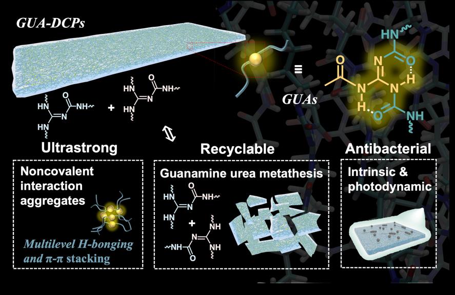 圖1. 動(dòng)態(tài)胍脲結(jié)構(gòu)和具有多重性質(zhì)聚胍脲材料的示意圖