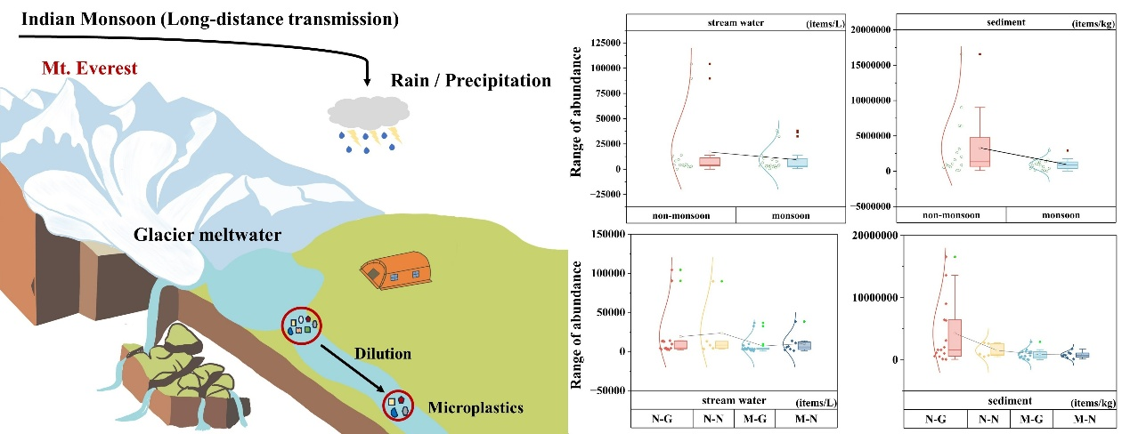 上述成果以Atmospheric emissions of microplastics entrained with dust from potential source regions和Riverine microplastics in the Mount Everest region affected by glacier meltwater為題發(fā)表在Journal of Hazardous Materials上。該研究獲國家自然科學(xué)青年基金B(yǎng)類和甘肅省杰出青年資金聯(lián)合資助。