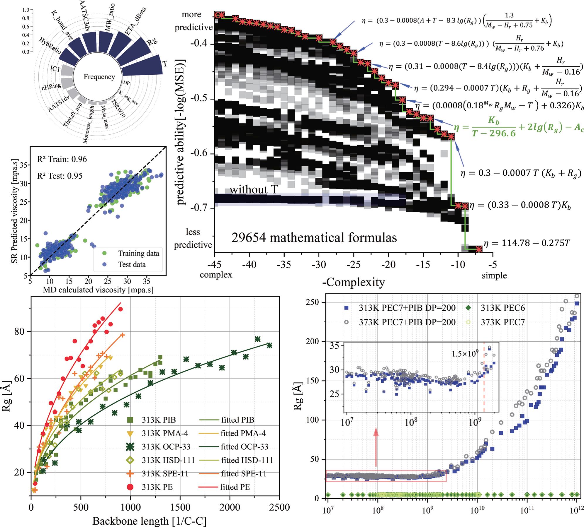 以上研究成果以“Exploring high-performance viscosity index improver polymers via highthroughput molecular dynamics and explainable AI”為題發(fā)表在npj computational materials上,蘭州化物所周銳博士生為論文第一作者,蘭州化物所鮑路瑤助理研究員、周峰研究員和蘭州大學(xué)卜偉鋒教授為共同通訊作者。