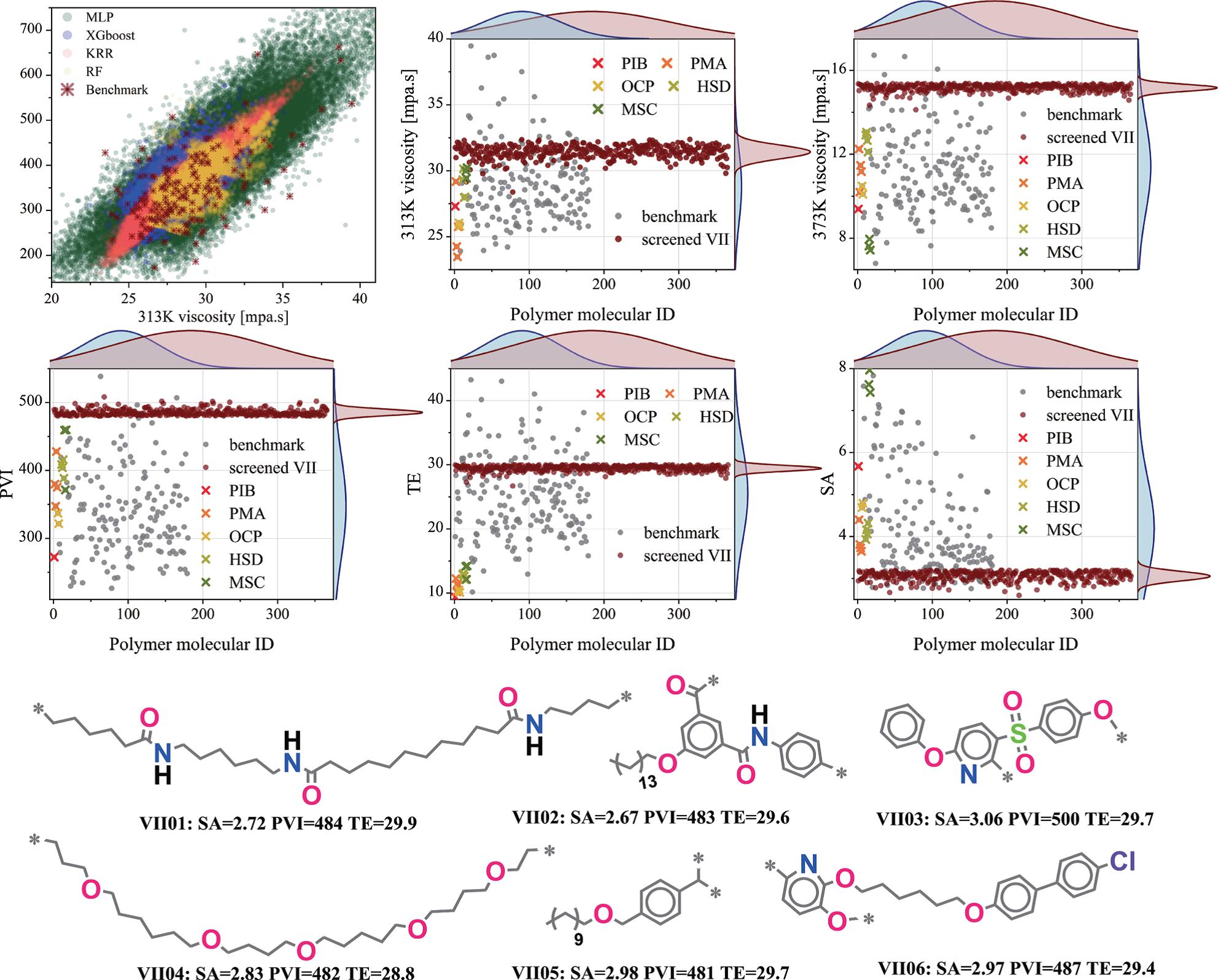 在軟凝聚態(tài)物質(zhì)(如聚合物)領(lǐng)域,實(shí)驗(yàn)數(shù)據(jù)質(zhì)量參差導(dǎo)致數(shù)據(jù)量不足。粘度指數(shù)改進(jìn)劑(VII)作為潤滑油核心添加劑,其性能依賴聚合物分子結(jié)構(gòu)與溫度響應(yīng)的復(fù)雜關(guān)系,但現(xiàn)有研究僅聚焦少數(shù)商用聚合物(如聚異丁烯),缺乏系統(tǒng)性數(shù)據(jù)支撐。盡管分子動(dòng)力學(xué)(MD)可模擬聚合物溶液物性,但缺乏針對(duì)VII的高通量數(shù)據(jù)生成方法。此外,現(xiàn)有ML模型多為“黑箱”,難以揭示定量構(gòu)效關(guān)系(QSPR),阻礙聚合物設(shè)計(jì)的理論指導(dǎo)。因此,亟需開發(fā)整合高通量計(jì)算、自動(dòng)化特征工程與可解釋AI的框架,以突破數(shù)據(jù)稀缺限制,推動(dòng)VII等復(fù)雜體系的理性設(shè)計(jì)。