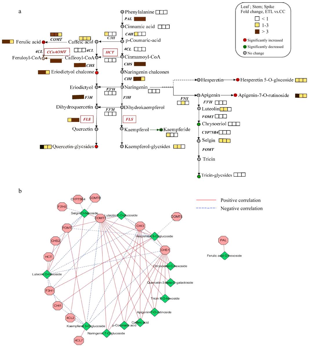 高、中海拔生態(tài)型沙蓬黃酮和苯丙烷合成通路中基因與代謝物的相關性