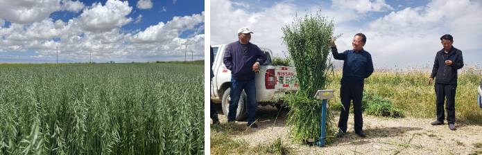 中國(guó)科學(xué)院西北高原生物研究所高原作物種質(zhì)資源創(chuàng)新與利用學(xué)科團(tuán)組培育出的高燕16和高燕17兩個(gè)燕麥新品種于2022年8月22日通過(guò)青海省農(nóng)作物品種審定委員會(huì)認(rèn)定備案,兩個(gè)新品種無(wú)論是草產(chǎn)量還是在種子產(chǎn)量相較原有燕麥主栽品種均具有較大優(yōu)勢(shì),廣受燕麥草種、飼草生產(chǎn)企業(yè)和專(zhuān)業(yè)合作社的好評(píng)。2022年,兩個(gè)燕麥新品種建立良種繁育基地共1.23萬(wàn)畝;2023年,兩個(gè)燕麥新品種在青海省海西州、海南州、湟中區(qū)等地示范推廣8.83萬(wàn)畝;2024年,青海奔盛草業(yè)和互助天佑德青稞酒公司在德令哈市尕海鎮(zhèn)和蓄集鄉(xiāng)分別種植0.7萬(wàn)畝和0.8萬(wàn)畝,產(chǎn)量和耐鹽堿能力突出,同時(shí)在青海海南、甘肅山丹軍馬場(chǎng)、西藏日喀則、阿里和新疆伊犁等地也有較大面積種植,2024年度推廣種植達(dá)20.16萬(wàn)畝。高原作物種質(zhì)資源創(chuàng)新與利用學(xué)科團(tuán)組分別于2020年和2021年申報(bào)兩個(gè)燕麥新品種的國(guó)家植物新品種保護(hù)權(quán),其中高燕16于2025年5月1日獲得正式授權(quán)(品種權(quán)號(hào):CNA20201004745),這是研究所獲得的首個(gè)國(guó)家植物新品種保護(hù)權(quán)。此次品種權(quán)的獲得,為高燕16品種的市場(chǎng)化推廣和科技成果轉(zhuǎn)化提供了堅(jiān)實(shí)基礎(chǔ)。