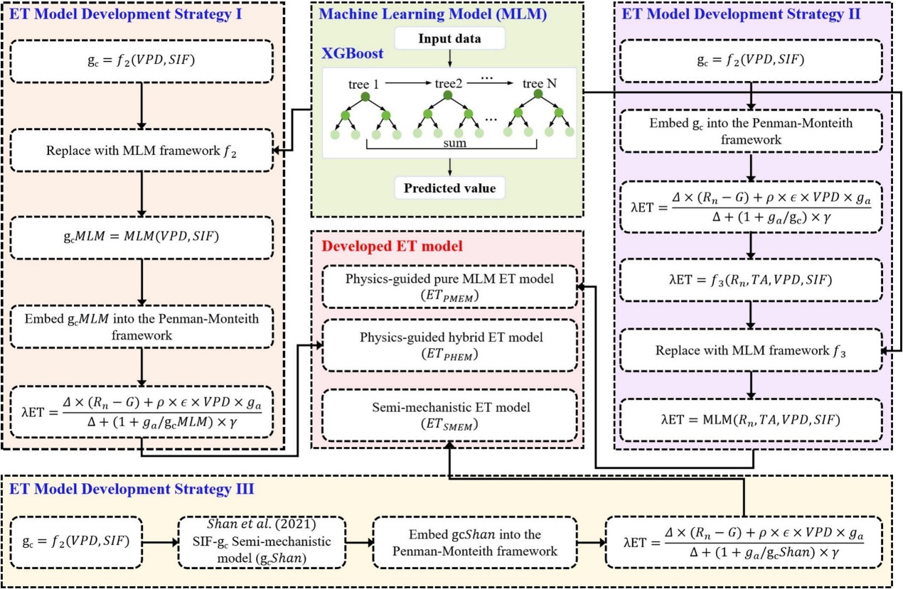 近日,中國科學(xué)院西北生態(tài)環(huán)境資源研究院祁連山冰凍圈與生態(tài)環(huán)境綜合觀測研究站研究團(tuán)隊(duì)構(gòu)建了兩種融合物理約束與機(jī)器學(xué)習(xí)方法的SIF驅(qū)動耦合ET模型,即物理引導(dǎo)混合ET模型(ETPHEM)和物理引導(dǎo)純機(jī)器學(xué)習(xí)ET模型(ETPMEM)。