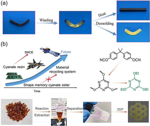 蘭州化物所形狀記憶氰酸酯在可重構(gòu)與可回收性能動態(tài)調(diào)控方面獲系列進展