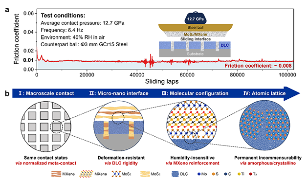 超潤滑源自非公度接觸效應,可使摩擦系數低至10-3量級及以下,其工程實現(xiàn)有望重新定義機械系統(tǒng)能量傳輸效率、精度、速度、壽命等性能邊界,帶來工業(yè)水平的變革性進步。自該概念提出近四十年來,超潤滑已從微納尺度逐步拓展至宏觀尺度,但受限于工業(yè)機械實際工況大接觸尺寸、重載受力與活性運行環(huán)境等多重耦合影響,在工程尺度超潤滑一直未能實現(xiàn)。