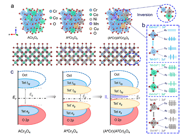 研究人員結(jié)合光譜分析與密度泛函理論計(jì)算,系統(tǒng)考察了中熵氧化物的混合價(jià)態(tài)、氧空位及電子結(jié)構(gòu)。結(jié)果表明,反尖晶石有序化和高構(gòu)型熵的協(xié)同效應(yīng)促進(jìn)了強(qiáng)軌道雜化、帶隙變窄和增強(qiáng)的電子-聲子耦合,這些機(jī)制共同支撐了卓越的紅外輻射性能。該研究系統(tǒng)的揭示了熵驅(qū)動(dòng)下陽離子無序化、位點(diǎn)反轉(zhuǎn)與晶格缺陷協(xié)同調(diào)控電子結(jié)構(gòu)與聲子行為的機(jī)制,實(shí)現(xiàn)了對(duì)紅外輻射性能的精準(zhǔn)優(yōu)化。這為開發(fā)兼具高發(fā)射率與高穩(wěn)定性的新一代紅外輻射涂層提供了理論指導(dǎo),也為熱管理、能量轉(zhuǎn)換和環(huán)境保護(hù)領(lǐng)域下一代高溫材料的研發(fā)繪制了發(fā)展藍(lán)圖。