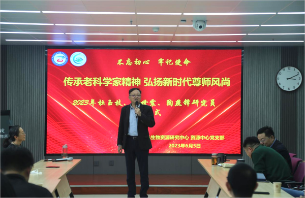 莫道桑榆晚,為霞尚滿天。6月5日下午,中國科學(xué)院西北高原生物研究所人事教育處聯(lián)合特色生物資源研究中心(以下簡稱資源中心)和資源中心黨支部,舉辦以“傳承老科學(xué)家精神 弘揚新時代尊師風(fēng)尚”為主題的教育活動暨職工榮休儀式。所長陳世龍,黨委書記、副所長張景光,副所長魏立新、楊其恩,管理部門負(fù)責(zé)人,退休研究員杜玉枝、馬世震和陶燕鐸及資源中心在職職工和研究生50余人參加會議。會議由人事教育處副處長楊紅霞和資源中心主任周國英主持。