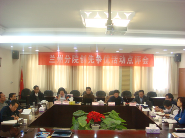 1月10日上午,蘭州分院黨組召開(kāi)創(chuàng)先爭(zhēng)優(yōu)活動(dòng)點(diǎn)評(píng)會(huì),參加會(huì)議的有蘭州各單位黨委書(shū)記及創(chuàng)先爭(zhēng)優(yōu)活動(dòng)辦公室的負(fù)責(zé)同志,分院黨組書(shū)記、創(chuàng)先爭(zhēng)優(yōu)活動(dòng)領(lǐng)導(dǎo)小組組長(zhǎng)謝銘主持會(huì)議并對(duì)各單位進(jìn)行點(diǎn)評(píng)。會(huì)議首先學(xué)習(xí)了中央和院黨組關(guān)于開(kāi)展點(diǎn)評(píng)工作的文件精神和要求,詳細(xì)聽(tīng)取了各單位開(kāi)展創(chuàng)先爭(zhēng)優(yōu)活動(dòng)取得的成效、存在的問(wèn)題和下一步工作思路,總結(jié)交流了創(chuàng)先爭(zhēng)優(yōu)活動(dòng)的主要做法和取得的階段性成效,對(duì)下一步工作進(jìn)行部署和安排。