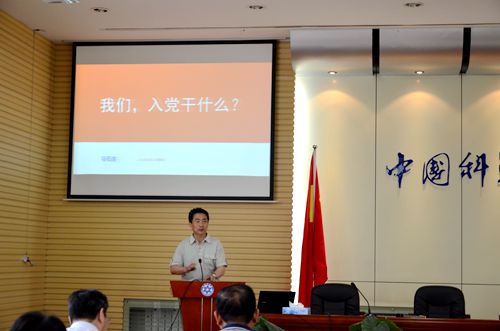 馬石莊以《我們,入黨干什么》為題,從自身的入黨經(jīng)歷講起,以國科大的學生黨建為例,分析了當前黨建工作現(xiàn)狀與問題,并重點闡釋了中央全面從嚴治黨的要求和開展“兩學一做”學習教育的重要意義。通過對中外政黨的對比分析、借助大量史實資料、數(shù)據(jù)圖片和實際案例,馬石莊引導大家更加客觀、全面地認識中國共產(chǎn)黨的領導、中國特色社會主義道路的開辟是歷史選擇、人民的選擇。告誡黨員干部要切實做到“政治上講忠誠,組織上講服從,行動上講紀律”,要不斷加強黨章黨規(guī)學習,堅定理想信念,自覺承擔起國家科技事業(yè)發(fā)展的重任。