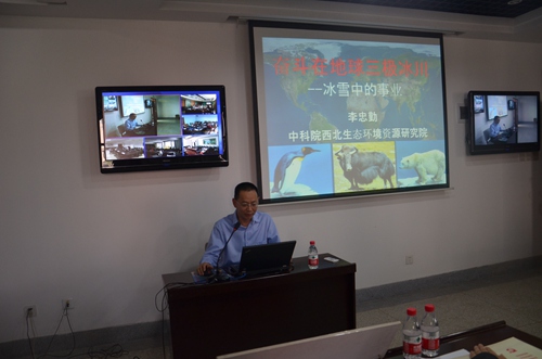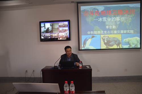 李忠勤結(jié)合自己在高寒極端環(huán)境無(wú)私奉獻(xiàn)30年的難忘工作經(jīng)歷,為與會(huì)人員深情講述了他《奮斗在地球三極冰川》的感人故事。他的報(bào)告分“北極科學(xué)考察介紹”、“走進(jìn)南極”和“中國(guó)冰川定位觀(guān)測(cè)”三個(gè)部分,通過(guò)普及地球三極(南極、北極和青藏高原)知識(shí)、梳理回顧世界及中國(guó)冰川科考?xì)v史、介紹中國(guó)冰川科考站情況及科考隊(duì)感人事跡,為大家作了一場(chǎng)生動(dòng)、感人的報(bào)告,一幅幅珍貴難得的實(shí)地照片再現(xiàn)了冰川科考工作的極端艱辛,一句句深情感人的樸實(shí)語(yǔ)言展示了共產(chǎn)黨人無(wú)私奉獻(xiàn)的政治品格。同時(shí),他強(qiáng)調(diào)指出,他所在的科研團(tuán)隊(duì)結(jié)合冰凍圈科學(xué)研究以野外工作為基礎(chǔ),具有人員分散、工作辛苦等特點(diǎn)的實(shí)際,制定了以黨小組為單元,研究室支部、所黨委聯(lián)動(dòng)的“兩學(xué)一做”方案,以科研工作為載體和抓手,深入扎實(shí)推進(jìn)“兩學(xué)一做”學(xué)習(xí)教育,取得了良好效果,發(fā)揮了黨支部是戰(zhàn)斗堡壘作用。他的報(bào)告圖文并茂,真實(shí)感人,既是一場(chǎng)科普?qǐng)?bào)告,更是一場(chǎng)生動(dòng)黨課,受到與會(huì)人員歡迎和好評(píng)。